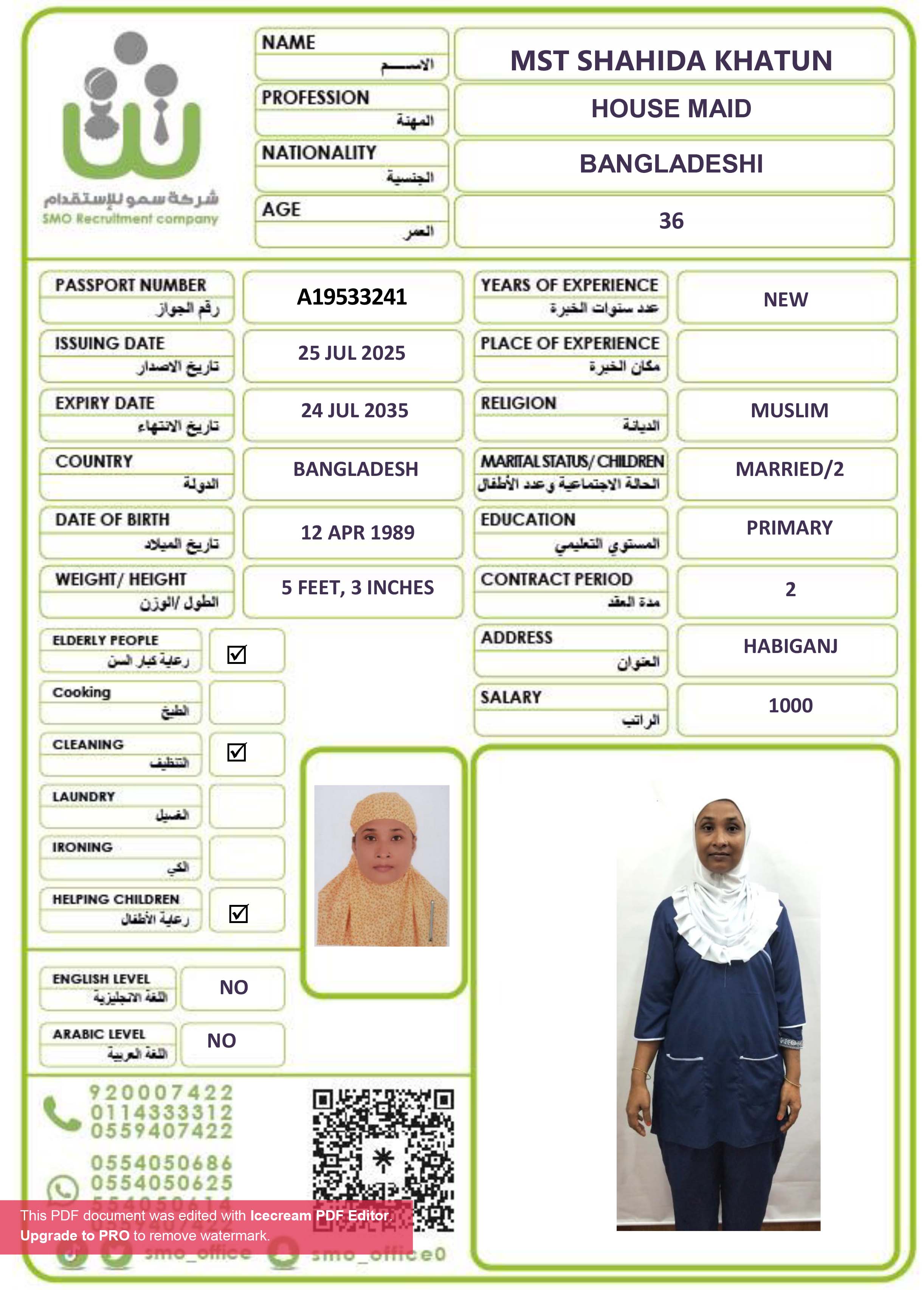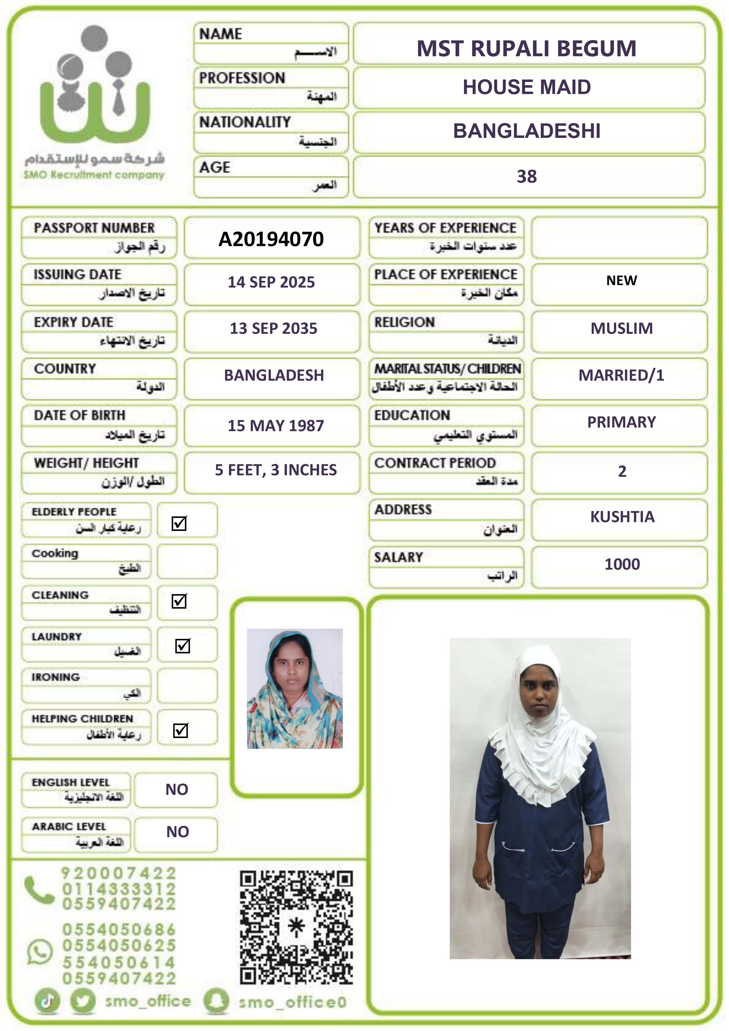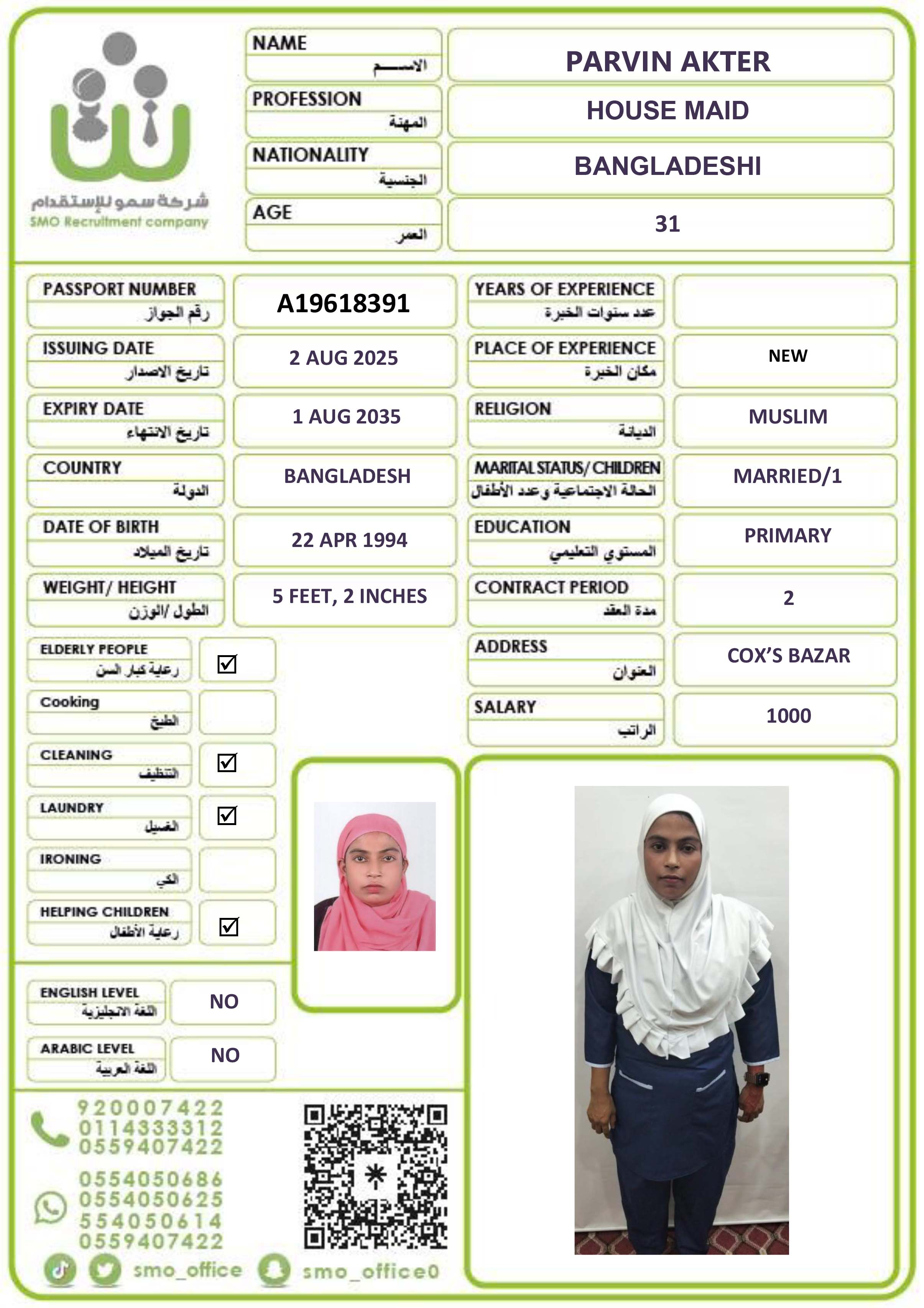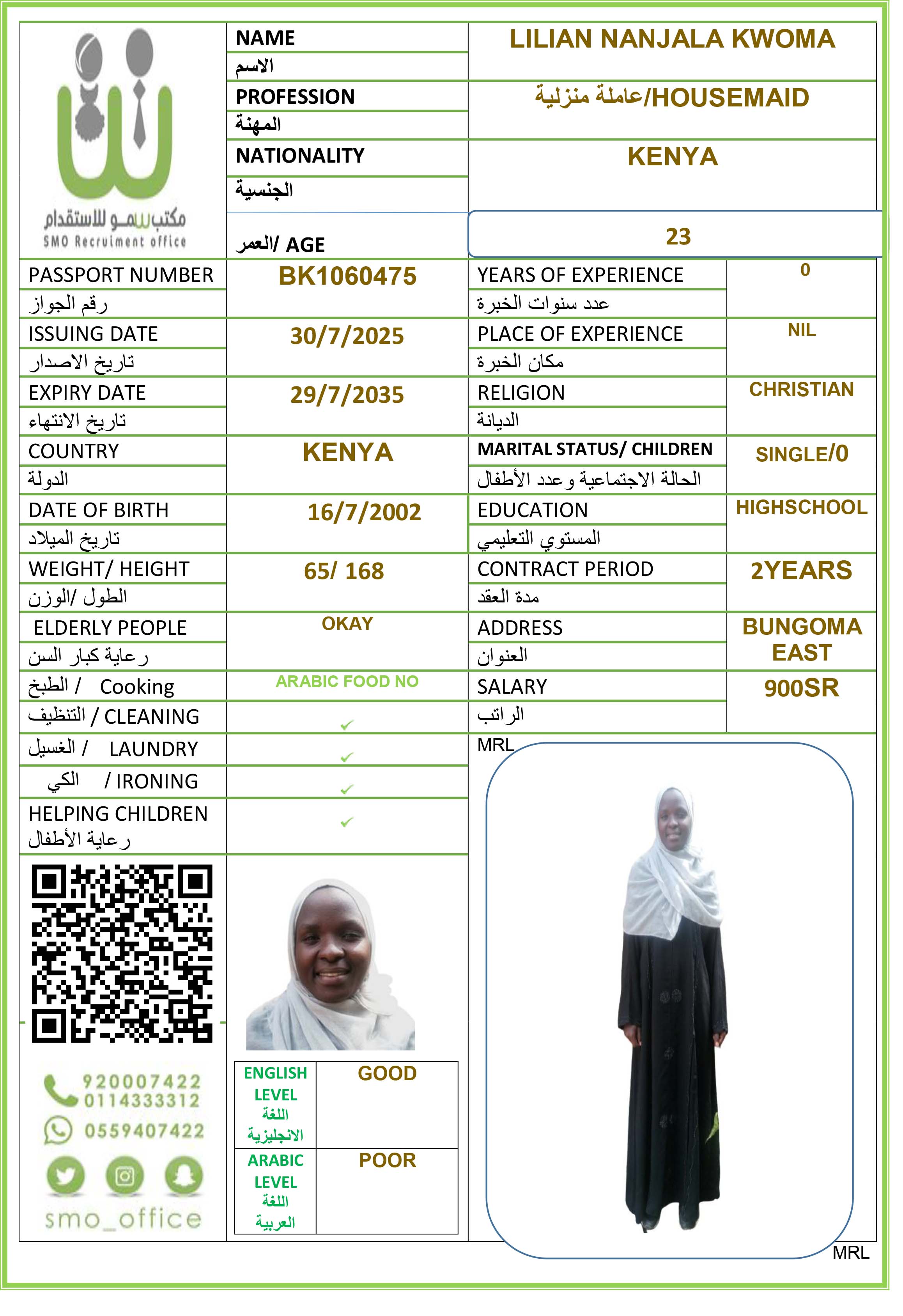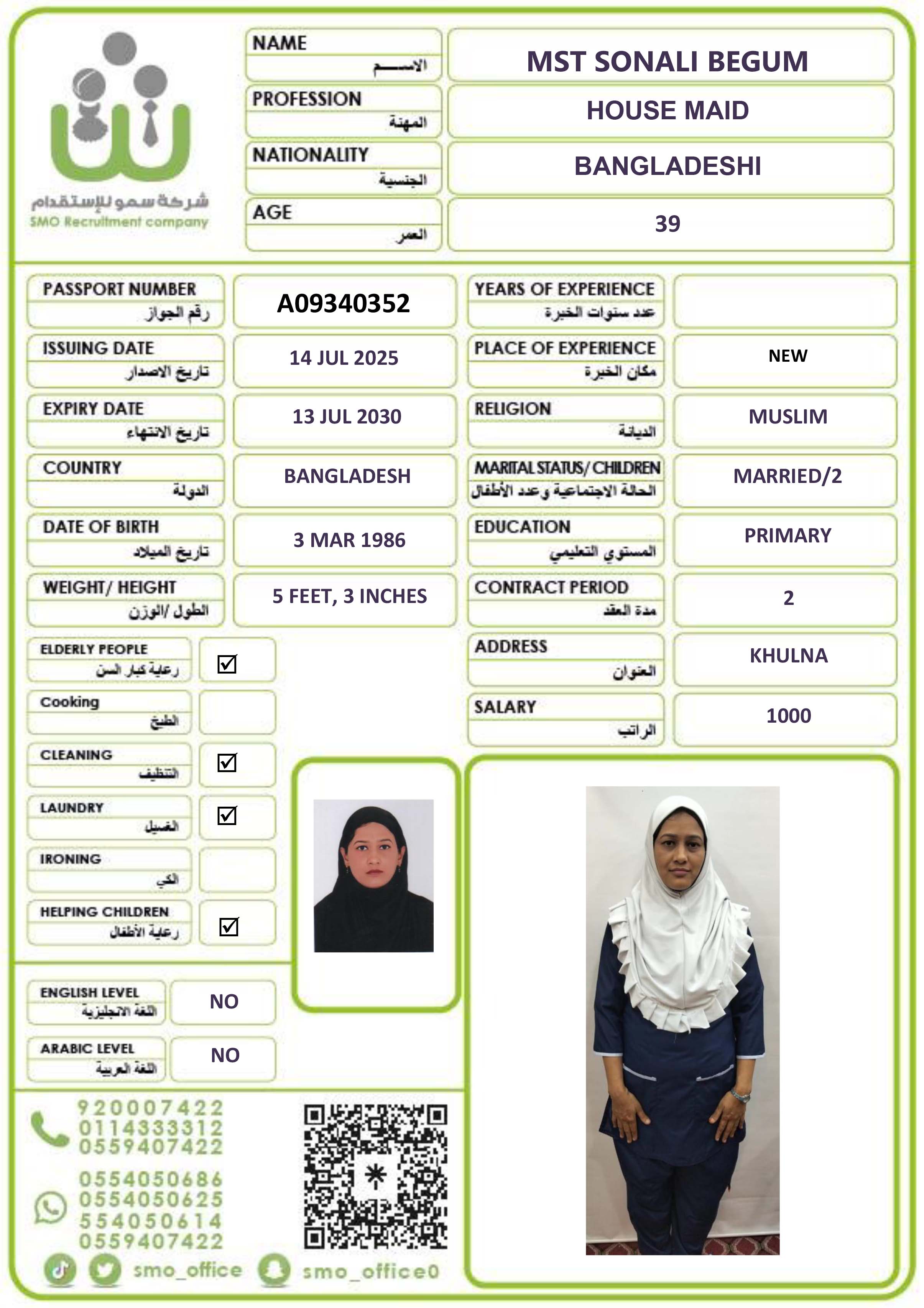 عاملة منزلية